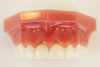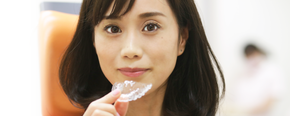 薄い透明な素材でできたマウスピースを、患者様ご自身で装着していただく方法です。目立たないので、他の人に気づかれることはほとんどありません。